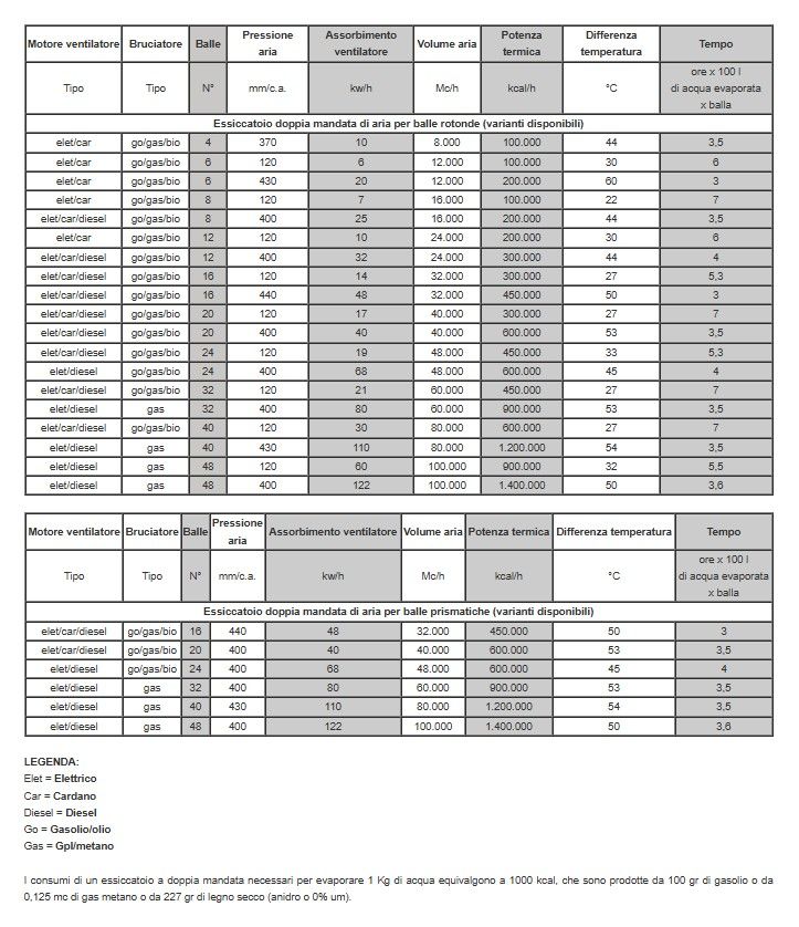 L’essiccatoio per foraggio descritto è una macchina di ultima generazione, più evoluta rispetto alla concorrenza, progettata per garantire essiccazione uniforme, rapida ed efficiente. Il sistema si basa su un ventilatore ad alte prestazioni che assicura volume e pressione d’aria adeguati, abbinabile a diverse motorizzazioni. Il generatore termico può funzionare a scambio diretto o indiretto e utilizzare numerose fonti energetiche, incluse biomasse e scarti aziendali, riducendo i costi. La struttura, robusta e zincata, integra cabina e terminali a mono o doppia mandata d’aria. L’impianto è personalizzabile con recupero aria, solare termico e altri optional.